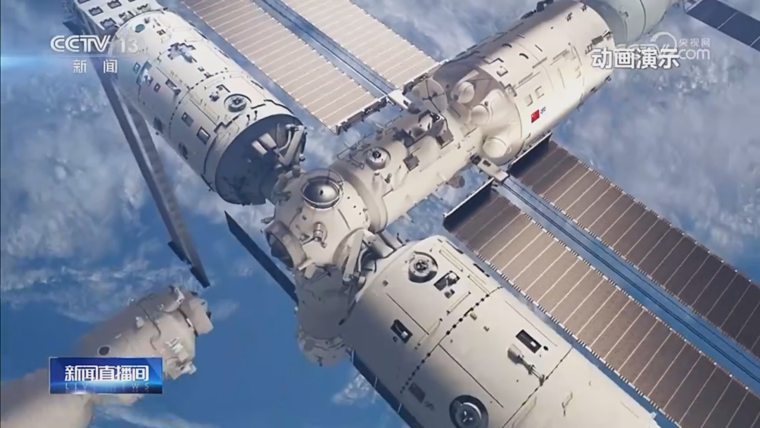 神舟二十二号对接的空间站节点舱前向对接口 图片来源:央视新闻截图