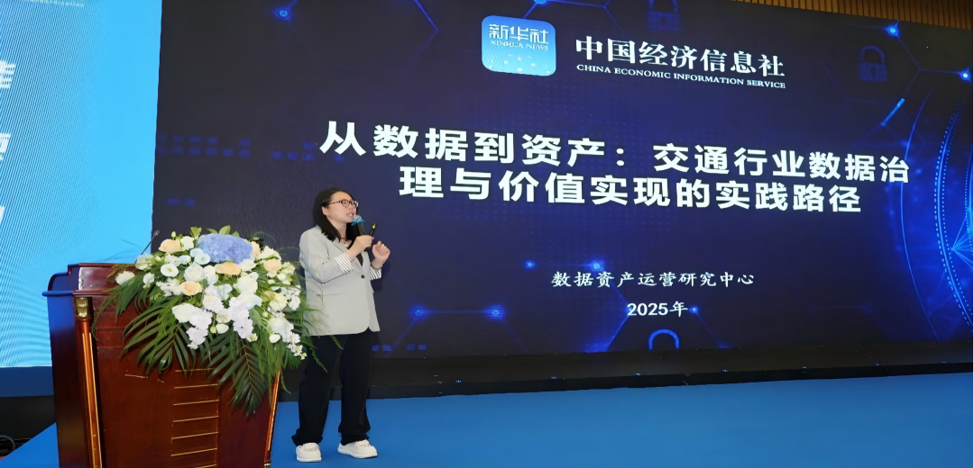 新华通讯社中国经济信息社数据资产运营首席执行官 赵丽芳 作“从数据到资产:交通行业数据治理与价值实现的实践路径”主题报告