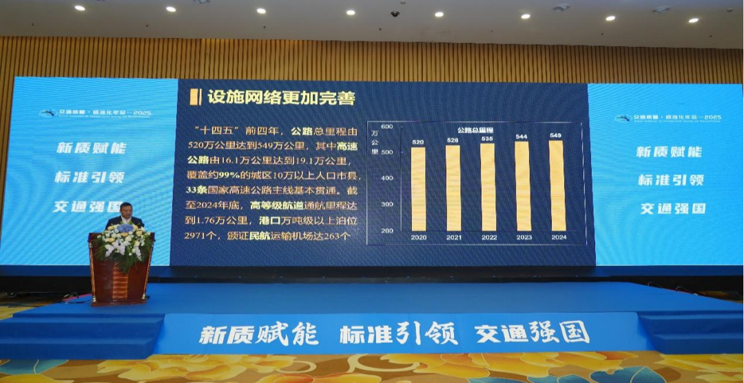 在主题报告环节,三位专家作深度分享。交通运输部科学研究院副院长方海以“对‘十五五’交通运输高质量发展的思考”为题,提出以数字化、绿色化、智能化为方向,加快构建现代化交通体系。中国标准化研究院原副院长李爱仙作“以标准体系引领企业高质量发展新格局”主题报告,阐述标准在企业战略定位和竞争力塑造中的核心作用。新华通讯社中国经济信息社数据资产运营首席执行官赵丽芳以“从数据到资产:交通行业数据治理与价值实现的实践路径”为题,分享数据治理体系建设、数据资产入表等方面的实践探索。