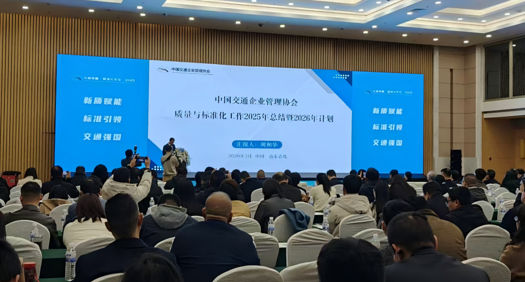 2026年3月19日至20日,以“新质赋能 标准引领 交通强国”为主题的交通质量·标准化年会——2025在青岛召开。中国交通企业管理协会会长杨咏,交通运输部科学研究院副院长方海,中国标准化研究院原副院长李爱仙,青岛城运控股集团党委副书记、总经理彭丽华,新华社经济信息社数据资产运营首席执行官赵丽芳,中国交通企业管理协会秘书长张骋等领导、专家及企业代表出席了年会。来自全国交通运输行业的近300名代表参加会议。