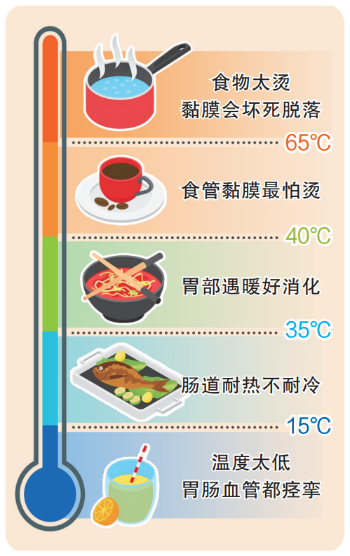 消化道各部位的黏膜厚度不同,对温度的耐受程度也存在差异