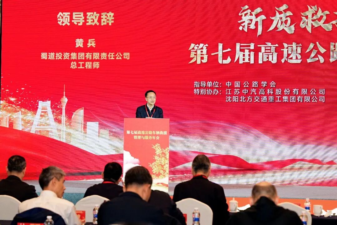 黄兵首先代表蜀道投资集团有限责任公司向与会嘉宾表示热烈欢迎和诚挚感谢。他指出,蜀道集团目前投资建设运营高速公路总里程逾1.2万公里,正加速从“蜀道通”向“蜀道畅”的历史性跨越迈进。面对日益繁忙的路网,蜀道集团始终秉持“人民至上、生命至上”理念,全面落实交通运输部“阳光救援”行动部署,加快推进高速公路“一键救援”全覆盖。