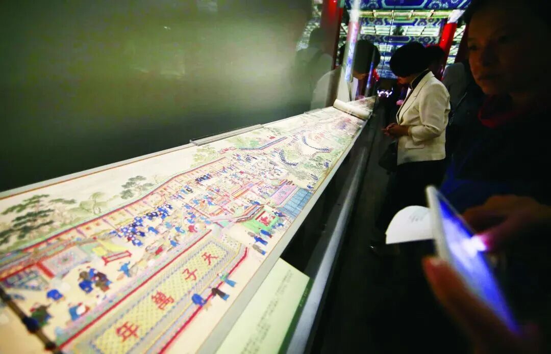 故宫博物院中展出的《康熙帝万寿庆典图》,全卷长39.39米,其展柜使用了增透减反射玻璃。图片来源于知识就是力量